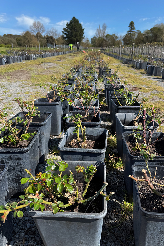Now is the time to mulch your rose plants, before the warmer weather kicks in. Mulching is very important as it provides a protective layer on your garden bed. By applying a thick layer, you are helping the rose (and other plants) to retain as much moisture as possible, to stabilise soil temperature and reduce weeds, and to provide important nutrients for the plant. Mulches come in various forms, but we suggest using one with a coarse characteristic such as lucerne, legume mulch (i.e.: pea and bean), cereal mulch (i.e.: wheat and barley), or a bark based organic mulch. Finer mulches such as sawdust or woodchips can have a drying effect and can compact together which is often detrimental to the plants. Don’t use any fresh mulch like loan clippings or fresh bark. When applying mulch allow at least a 10cm thickness around each plant, keeping a space immediately next to the base of the plant so that water can access the root system. We recommend a solid soaking prior to laying the mulch followed by a good watering afterwards to bed it down. Remember if you are wanting to add a slow-release chemical fertiliser it should only be applied to dry plants as it can cause burning. We prefer organic mulch as opposed to a synthetic matting or weed suppressant because you create an ideal environment for earth worms. They naturally aerate the soil and their castings are the best form of natural fertiliser for your soil.